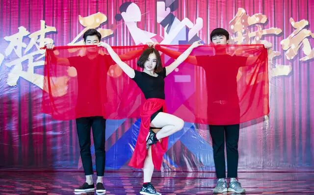 员工子弟航哥带领的三人组合均以一身黑色装扮帅气亮相,动感的节奏,酷酷的动作,让我们一起高喊:bang bang bang,街舞尬起来。