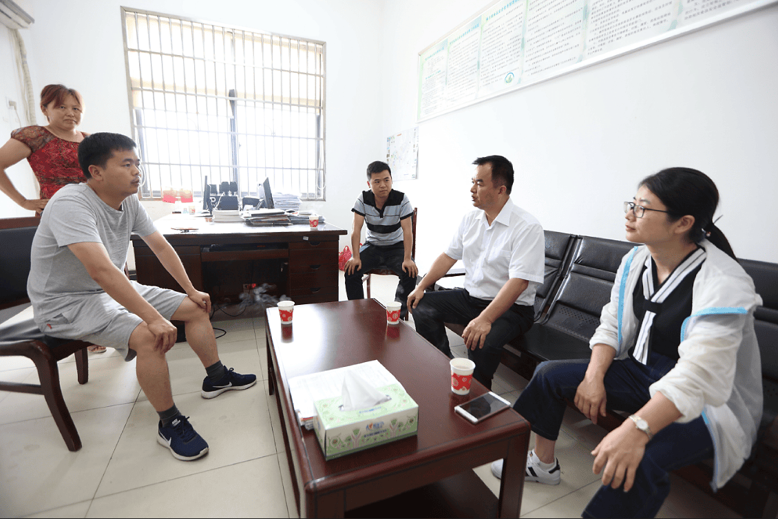 ↗ 关圣村村支书(左二)代表当地民众接受楚天科技5万元救灾现金捐款