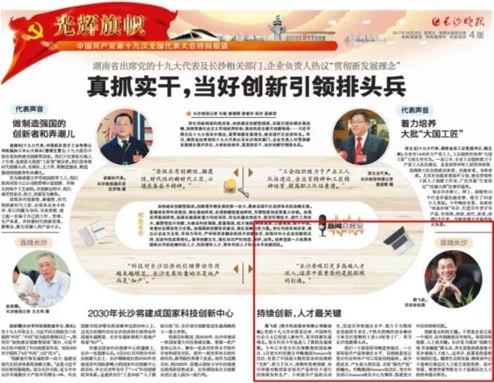 作为长沙智能制造领域代表性企业,楚天科技副总裁周飞跃应《长沙晚报》邀请,与长沙市各机关单位、重点企业的负责人一道,围绕十九大主题建言献策。畅谈在未来发展中,如何践行新发展理念?